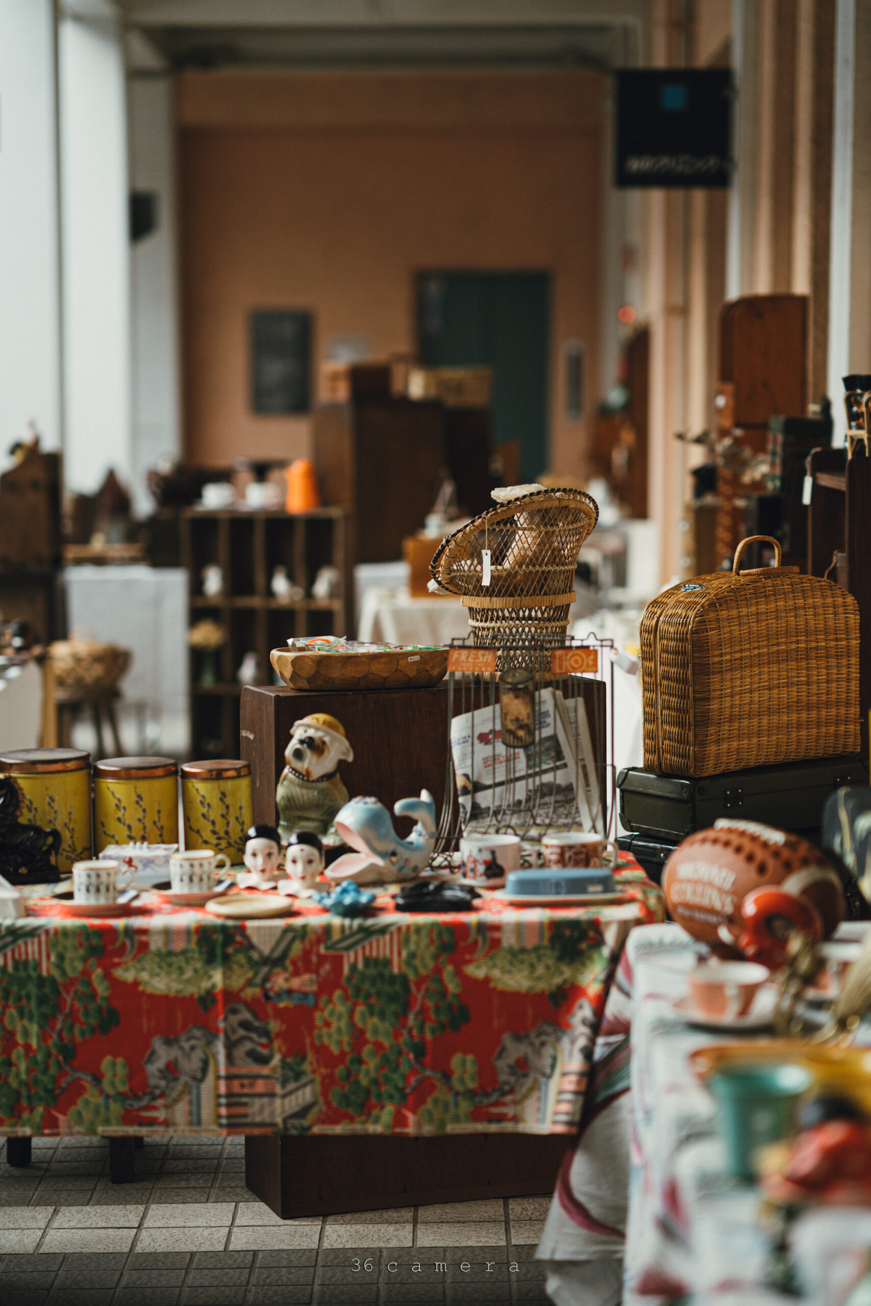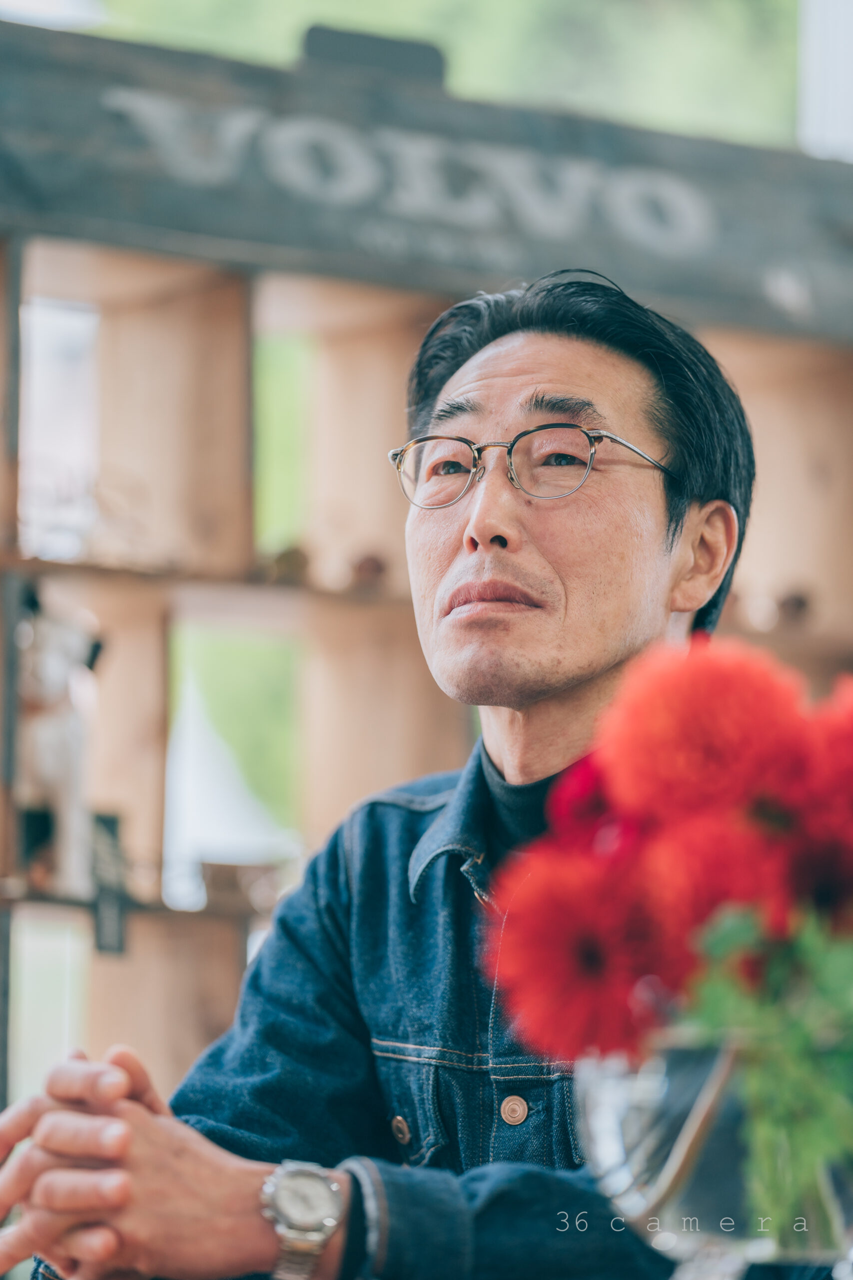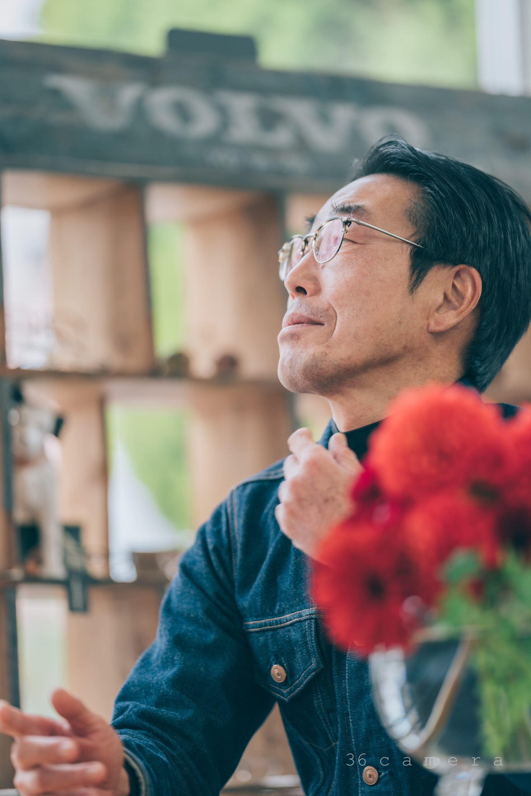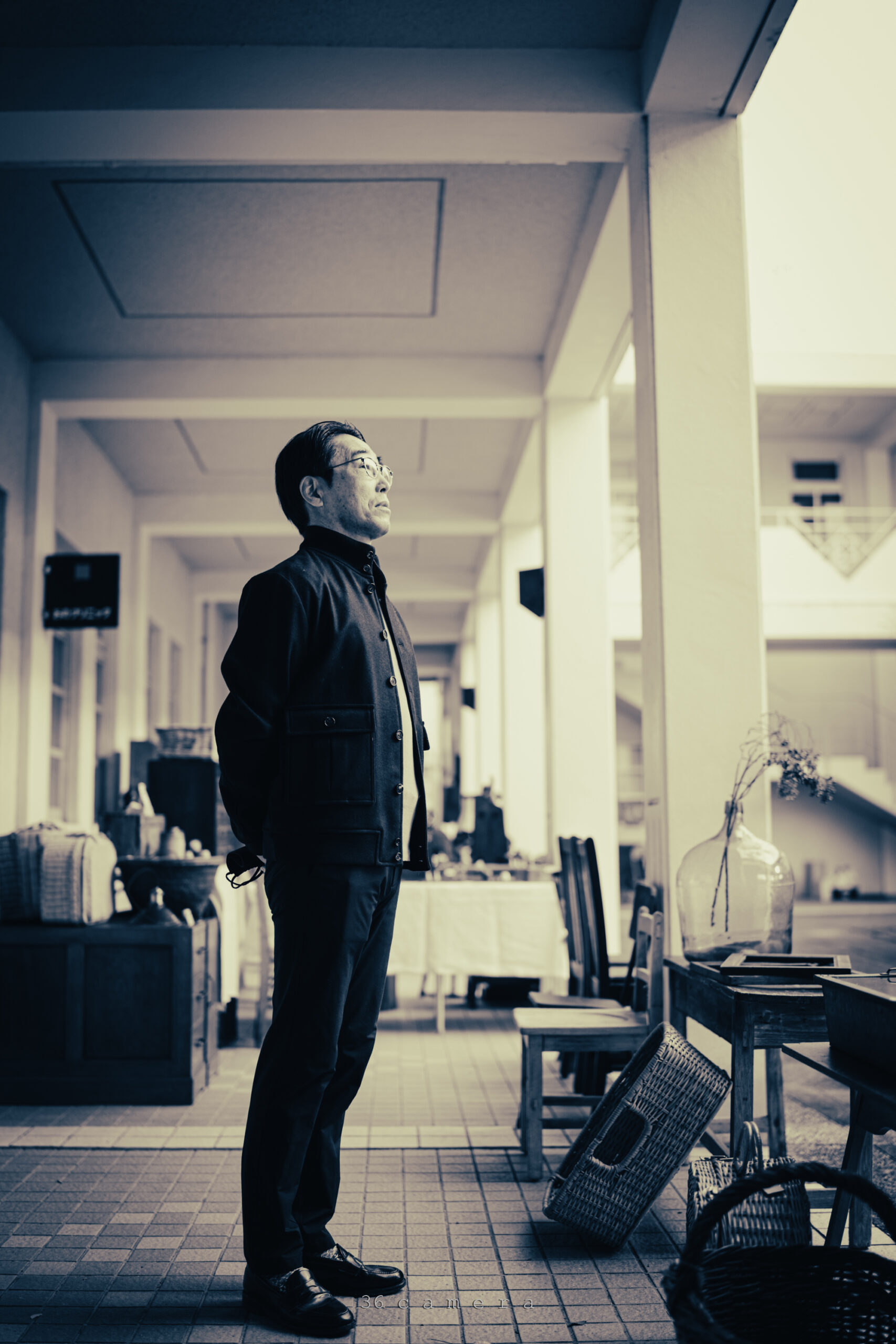 このときは、めがねステージおかざきさんのお店のある建物の中庭で、ふるもの市が開催されるとのことで、ふるもの市をロケーション撮影に使わせていただき、岡崎さんのポートレートを撮りました。