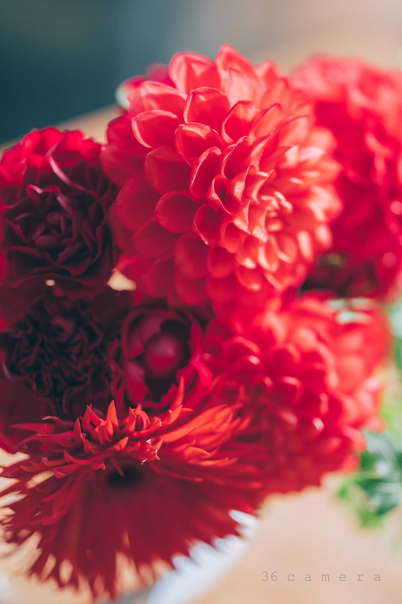 その赤い花を画面に入れて、岡崎さんが主役のポートレート写真を多数撮影しました。